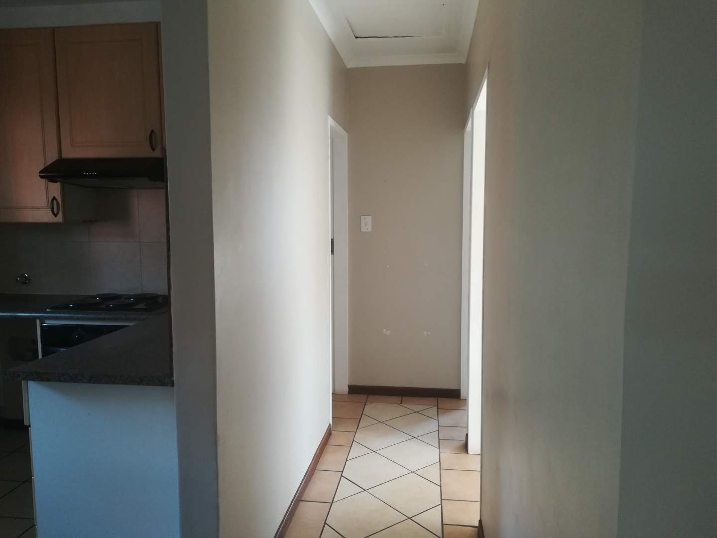 Spacious 2 bed apartment in a secure complex, The property offers 2 bedrooms, main bedroom with a en-suite (shower, toilet & hand basin). Separate bath, toilet, and hand basin. Spacious open plan lounge, & kitchen. Lounge has space for a small dining set. The kitchen is well positioned with ample cupboard space, 2 appliances connection for dishwasher and washing machine. The property comes with a double lock up garage, pre-paid electricity.