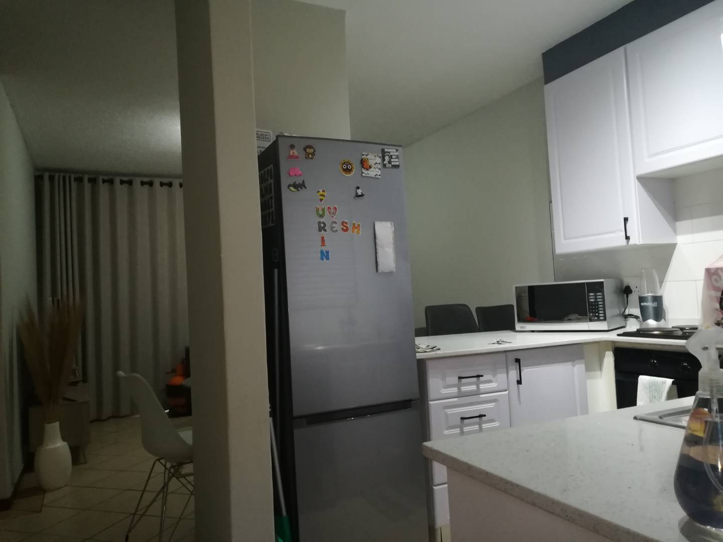 Spacious kitchen was redone, granite countertop, modern unique cupboards, average size kitchen with a practical lay-out.