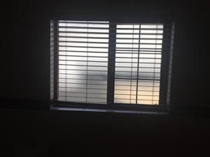 Large porcelain tiles and blinds.